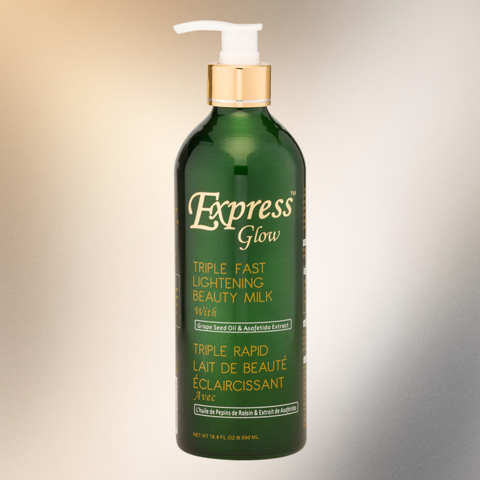 Express Glow Triple Fast Beauty Milk 16.8 oz Looking for quick results? Express Glow Triple Fast Beauty Milk is an advanced body lotion that tones and softens the skin while delivering powerful results. If you have resistant skin, this is your solution. Net Weight: 16.8 fl. oz. / 500 ml How to Use: Apply Express Glow Triple Fast beauty Milk evenly onto your body, once or twice a day. For use on the body only!!! Skin Type: Especially formulated for users who need advance with oily and acne prone skin. Can also be used for all skin type. Caution: For external use only. Avoid contact with eyes and lips. If irritation occurs, discontinue use. Do not use on children under 12 years old. Keep in cool and dry place.