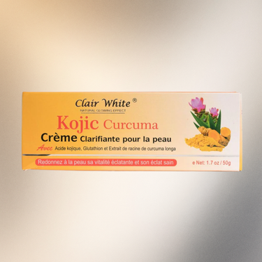 Introducing Clair White Kojic Turmeric Natural Glowing Effect Cream! This powerful combination of Kojic Acid and Turmeric Extracts helps to reduce the appearance of damage to the skin, age spots, sun spots, and hyperpigmentation caused by chemicals, birth control pills, and daily exposure to the sun. With Hyaluronic Acid, this cream helps to keep skin smooth and plump by trapping and holding up to 1000 times its weight in water. With regular use, this cream will provide you with beautiful, youthful, glowing skin!