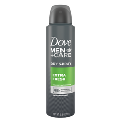Dove Men+Care Extra Fresh Dry Spray Antiperspirant Deodorant is the perfect solution for long-lasting protection against sweat and odor. The advanced formula provides up to 48 hours of protection and is clinically proven to combat sweat and odor. The spray goes on instantly dry, leaving no visible residue and has a refreshing, invigorating scent that keeps you feeling fresh all day. This men’s dry spray antiperspirant deodorant is formulated with ¼ moisturizer technology to help protect skin against irritation, so you can trust that your skin is being cared for. Keep sweat and odor under control with Dove Men+Care Extra Fresh Dry Spray, the best antiperspirant deodorant for men.