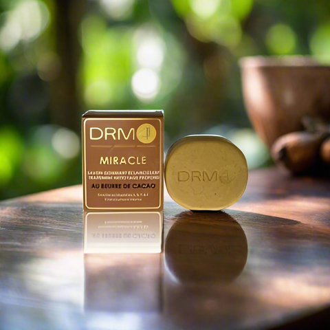 DRM4 MIRACLE Cocoa Butter Scrubbing Soap 7 oz This soap has a cocoa butter and vitamins A, B, C & E base for a double effect, cleaning and exfoliating, eliminating everything that can dull your skin and allowing for natural beautification. It's the indispensable soap that will not only allow quick and easy absorption, but also multiply efficiency when applying your skin . It eliminates impurities and dead skin cells, thins out the skin grain and soothes the skin. Helps pad the skin leaving it firmer and smoother. Instructions Use the soap everyday scrubbing for one minute to allow the active ingredients to take effect, and rinse.