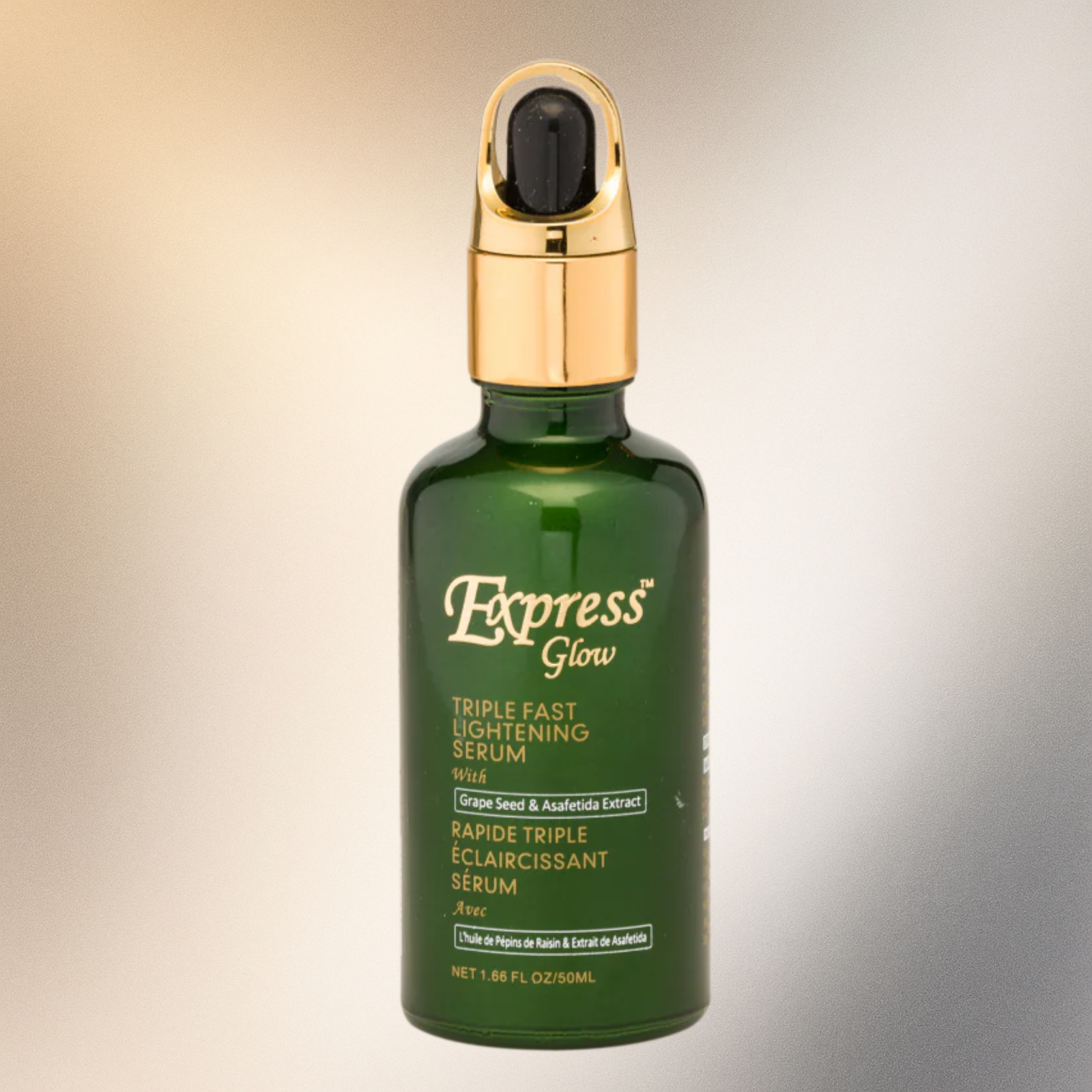 Express Glow Triple Fast Serum 1.66 oz Express Glow Triple Fast Serum is a highly concentrated formula containing a nourishing blend of Asafetida extract, Grapeseed oil and Vegeclairine. Implement this highly advanced serum into your skincare regimen for effective toning results. Net Weight: 1.66 fl. oz. / 50 ml