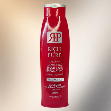 RICH & PURE Shower Gel 750ml RICH & PURE Exfoliating Shower Gel cleanses deeply the pores and removes dead cells of the skin. This shower gel stoles gently and leaves skin smooth and healthy. use dailyfor a more radiant and glowing skin. Keep out of the reach of children.