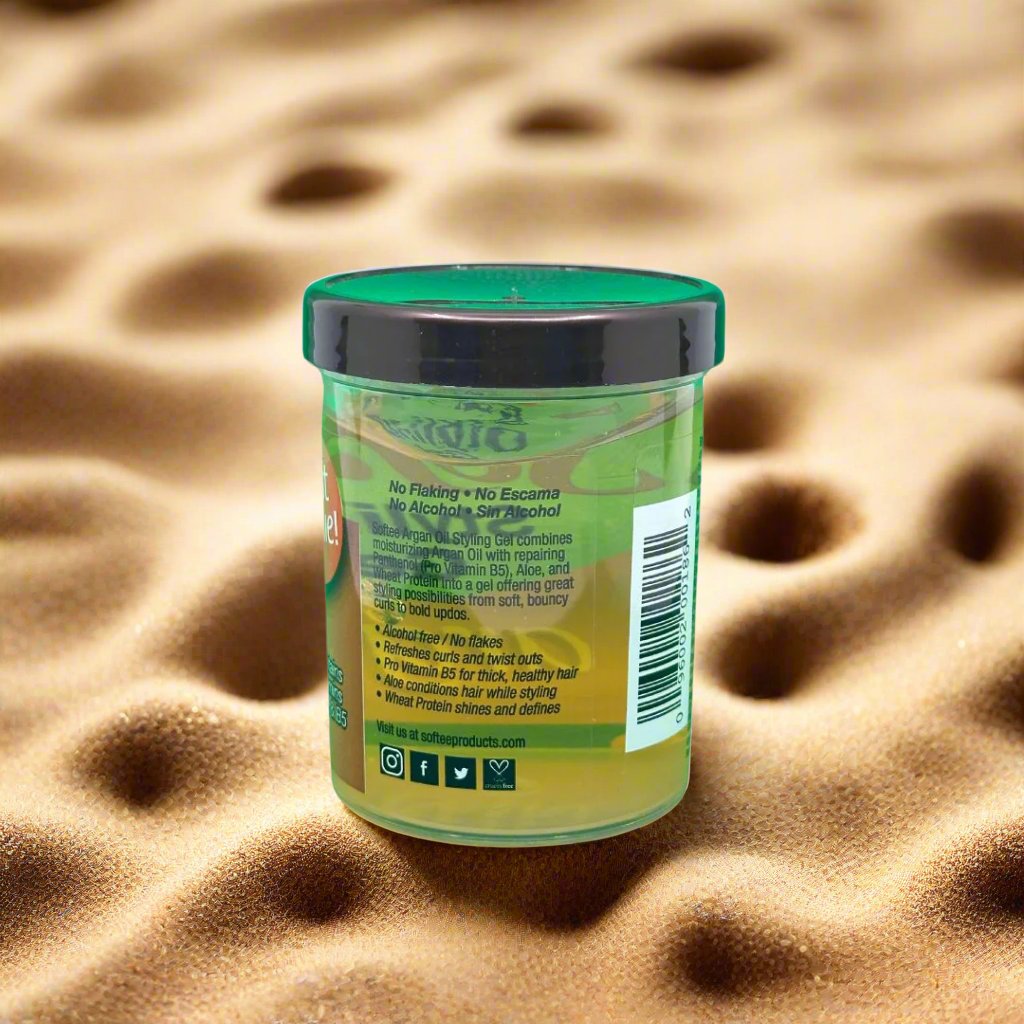 Discover the transformational power of Softee Styling Gel Argan oil. This 227g gel is enriched with argan oil to nourish and condition your hair while providing a strong hold that lasts all day. Experience healthier, sleeker and more manageable hair with Softee.